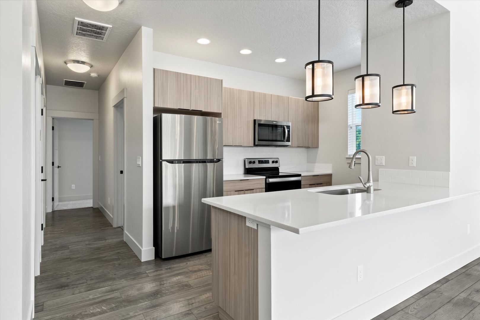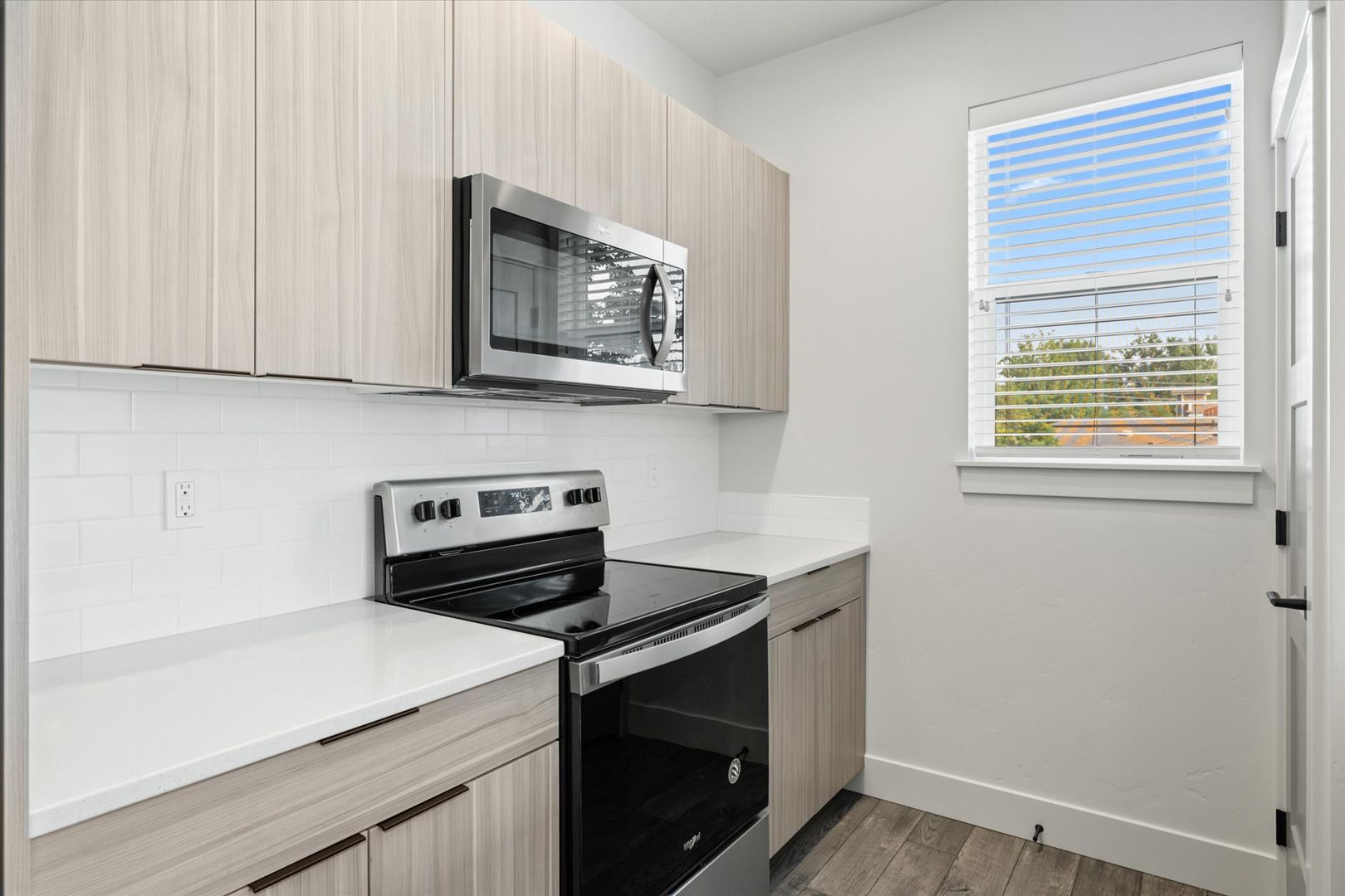 Step inside and enjoy the open concept living area with large windows that bring in abundant natural light. The kitchen features stainless steel appliances, ample cabinet space, and a large kitchen countertop. The primary suite includes a private bathroom and generous closet space, while the second bedroom offers flexibility for guests or a home office.