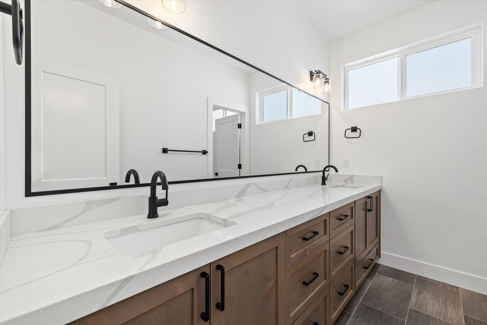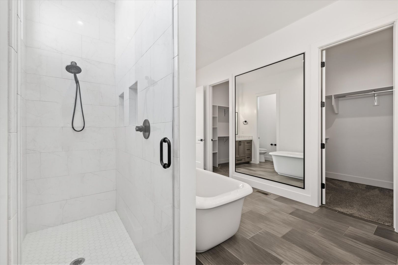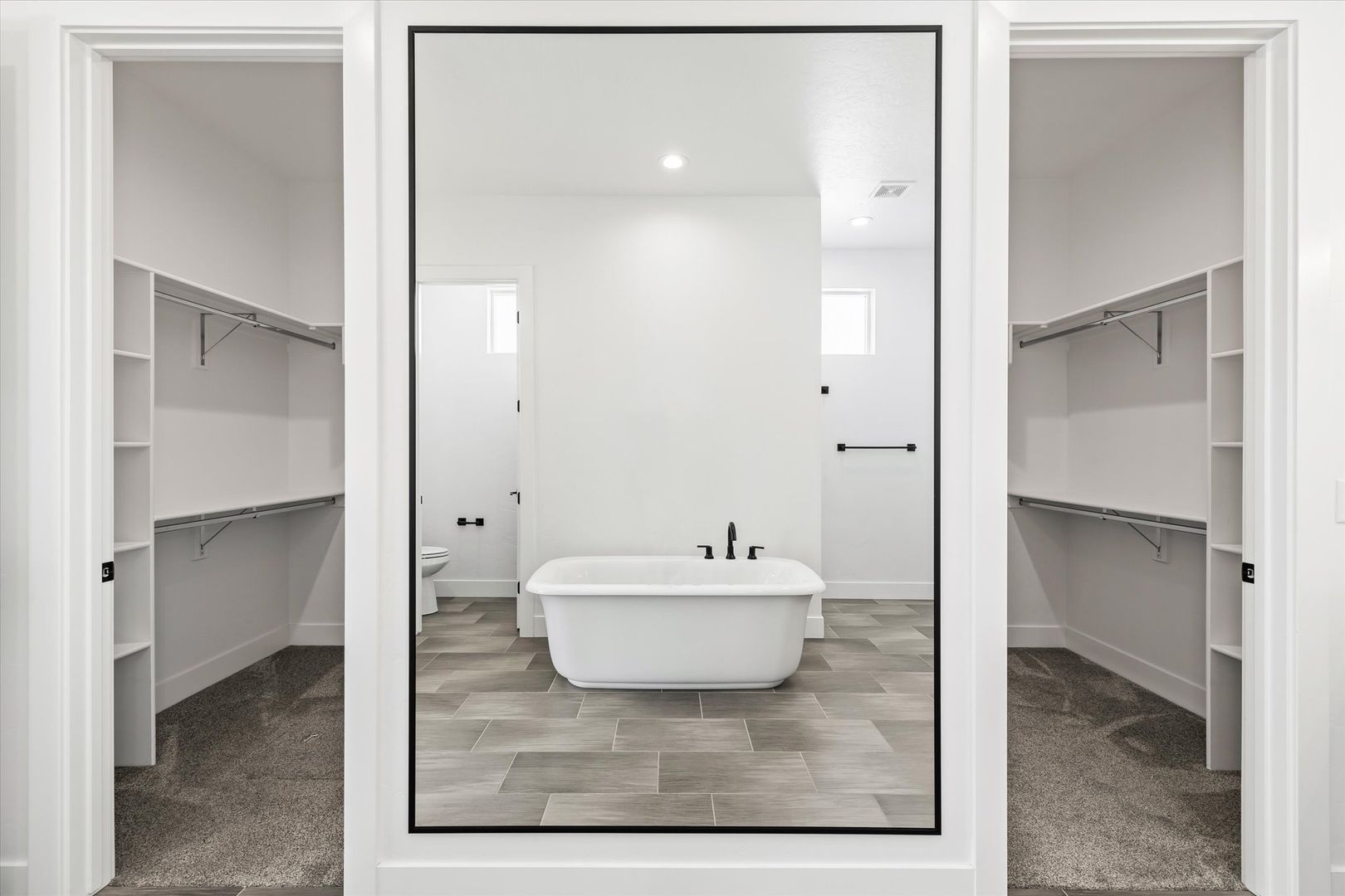 The primary suite is a true sanctuary, featuring dual walk-in closets and a massive walk-in tile shower—a perfect blend of space and spa-like comfort.