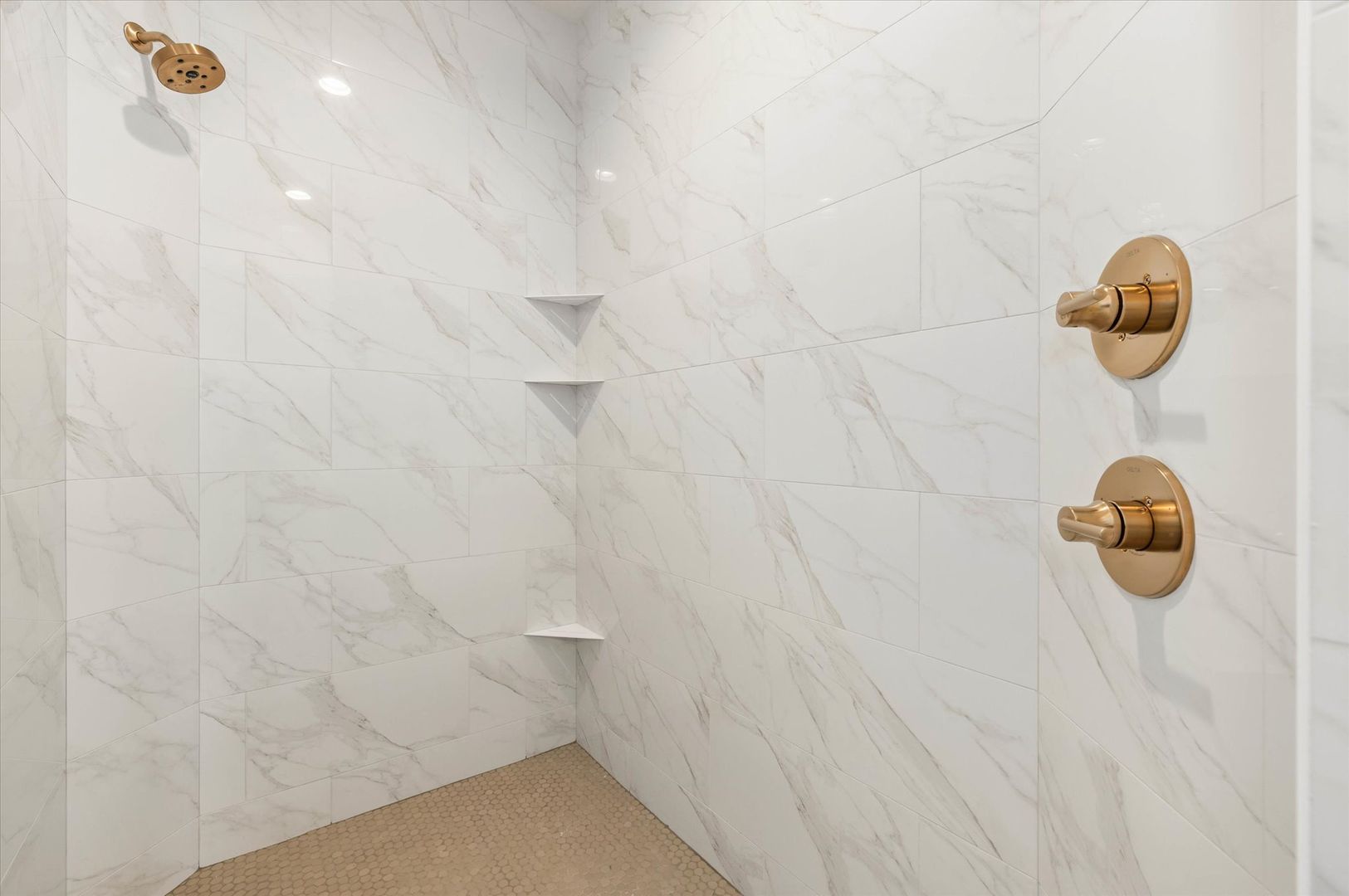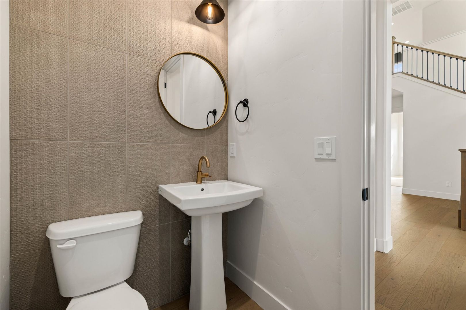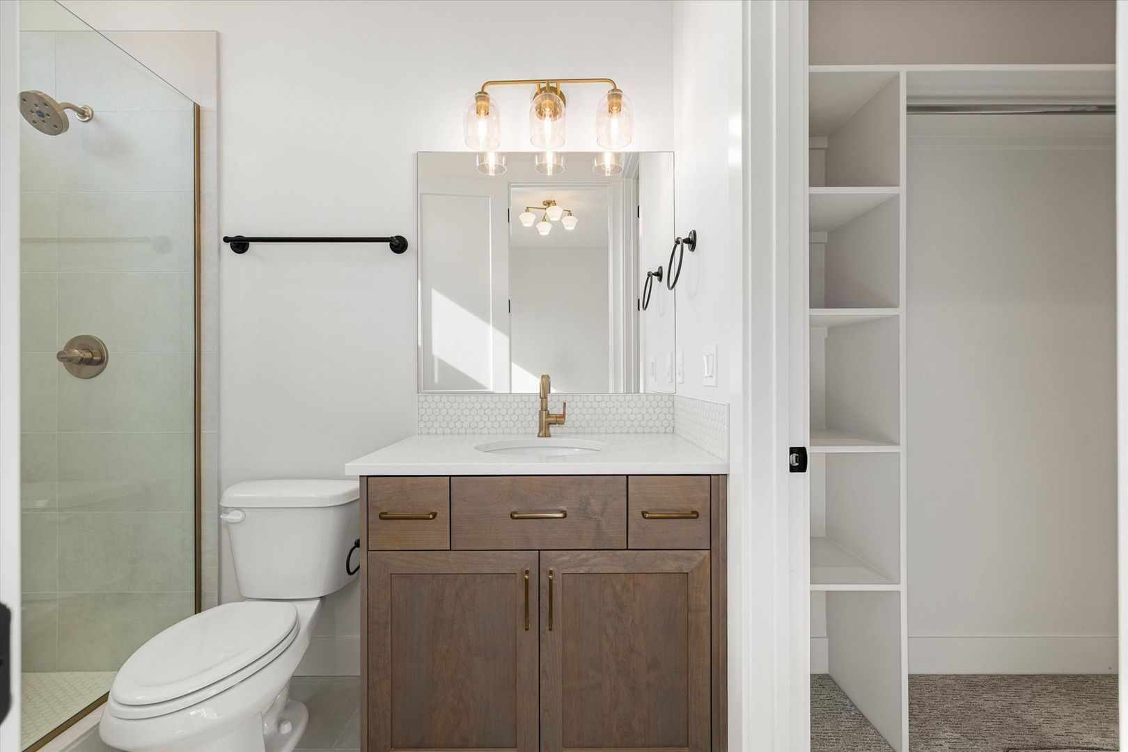 Upstairs, a loft and bridge-style hallway overlook the great room below, adding architectural depth and visual impact. The primary suite is a private retreat, capturing scenic views from both the bedroom and spa-inspired bathroom. On the main level, a guest ensuite with walk-in closet offers privacy and flexibility—ideal for multigenerational living, executive guests, or a private office suite.