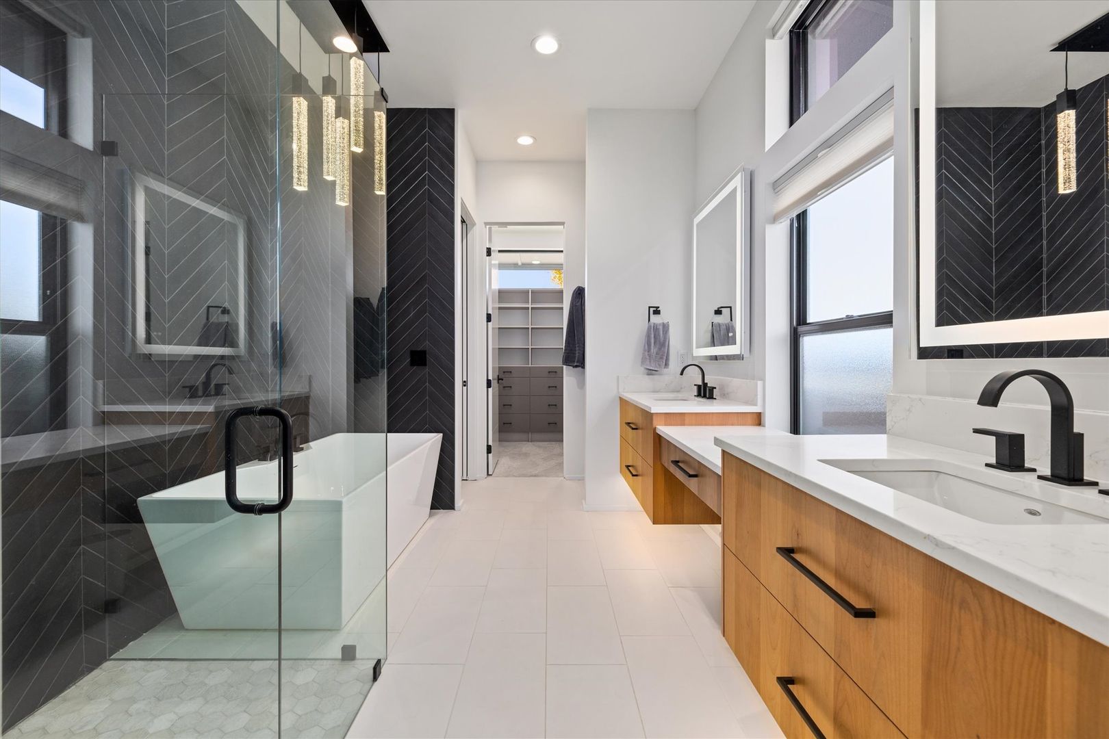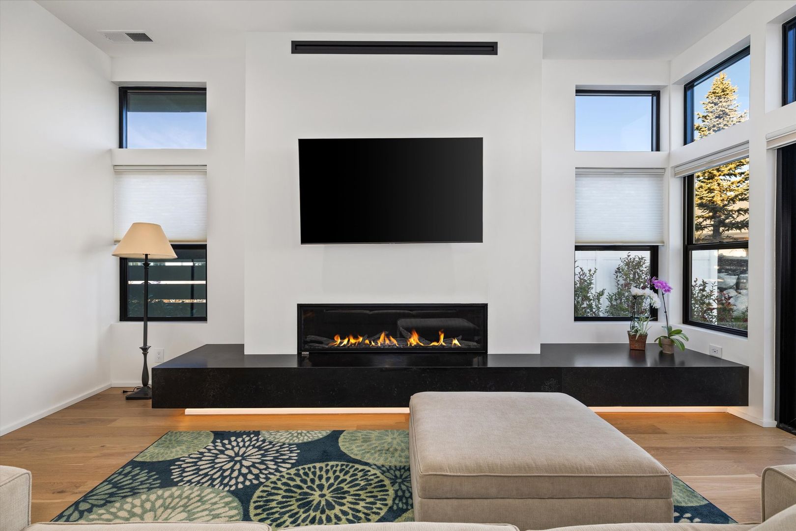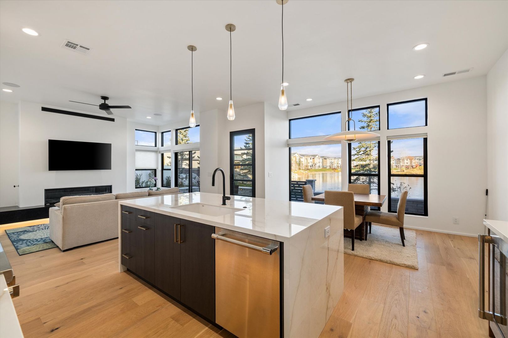 Perfectly positioned on the water, this luxury residence offers unobstructed views of the 26-acre lake and the Boise Foothills, creating a serene backdrop from both the private enclosed entry courtyard and the elevated second-story balcony. Designed by Rennison and finished with upscale materials, the home blends refined style with low-maintenance elegance.