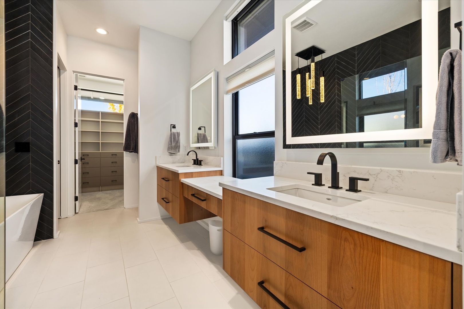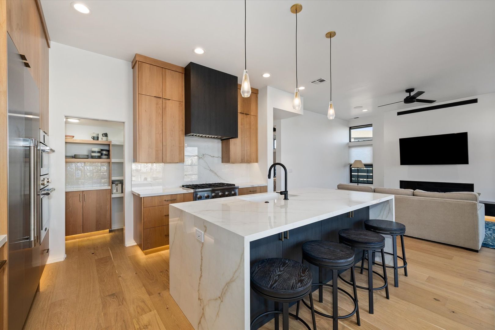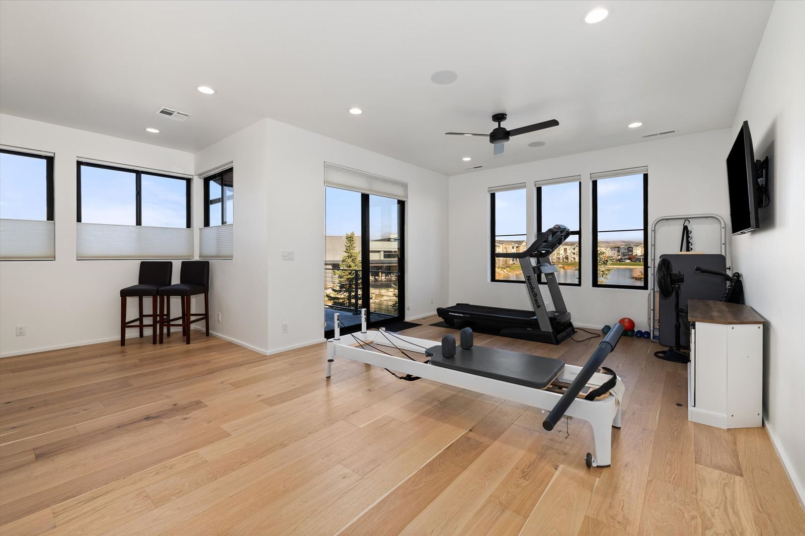 Perfectly positioned on the water, this luxury residence offers unobstructed views of the 26-acre lake and the Boise Foothills, creating a serene backdrop from both the private enclosed entry courtyard and the elevated second-story balcony. Designed by Rennison and finished with upscale materials, the home blends refined style with low-maintenance elegance.
