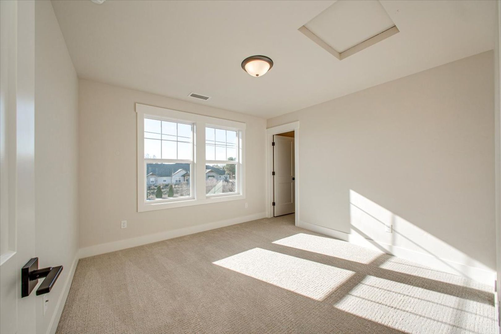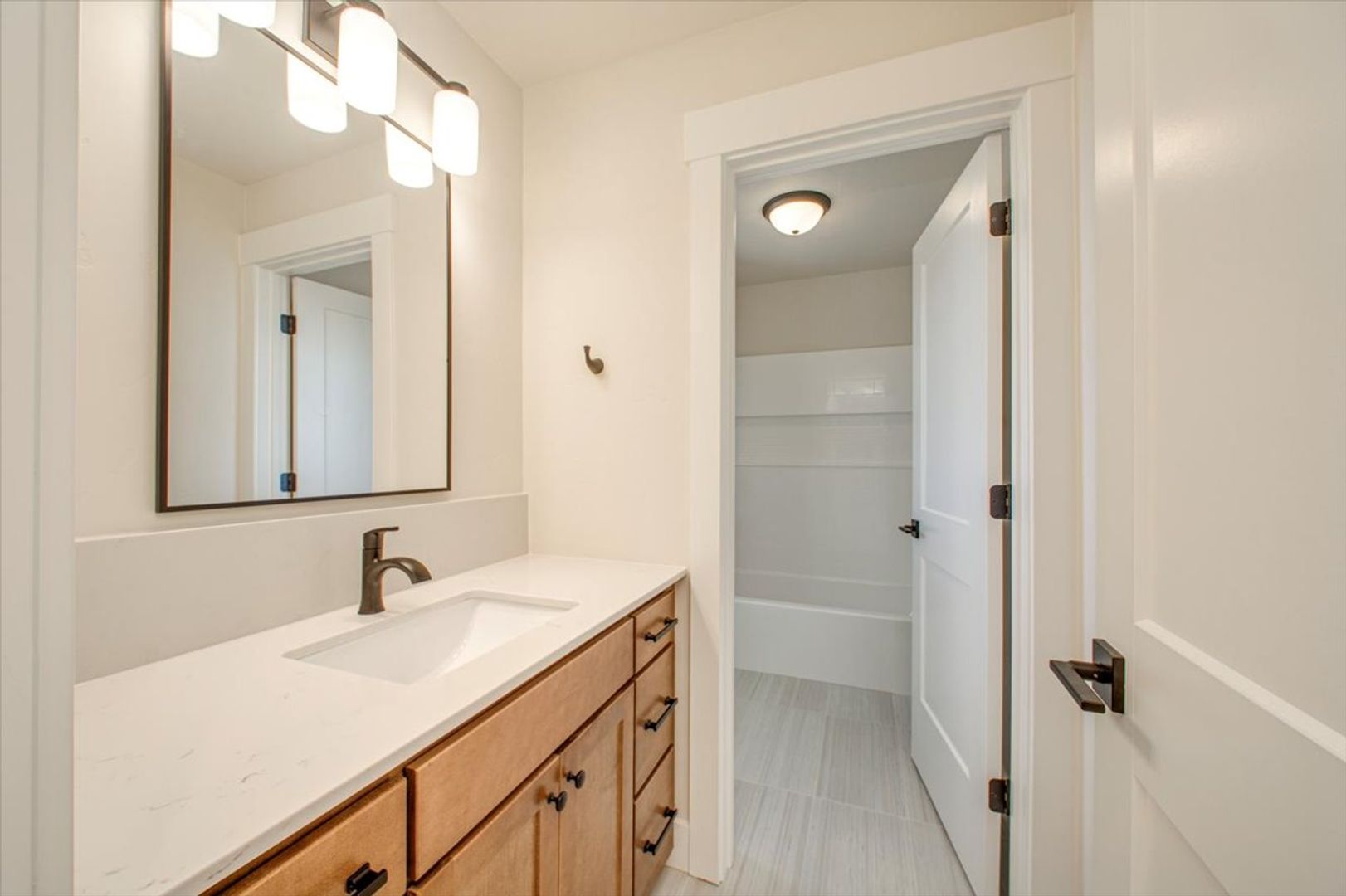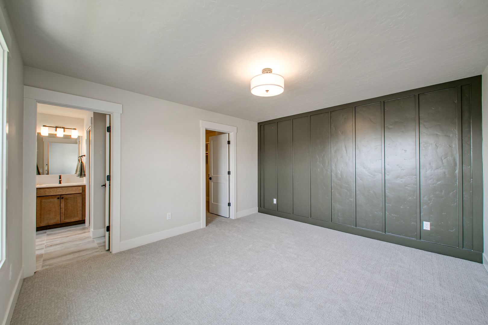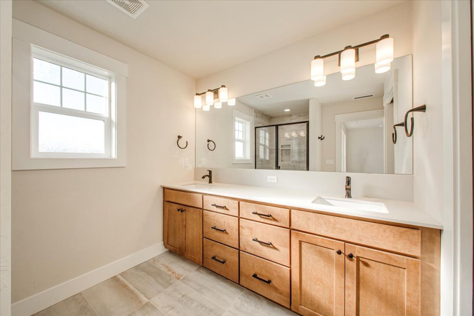 The main-level primary suite offers a serene retreat, complete with a spa-inspired en suite bathroom, dual vanities, floor-to-ceiling tile shower, and a spacious walk-in closet. Two additional bedrooms (including one on the main level) offer flexibility for guests, home office, or bonus room use.